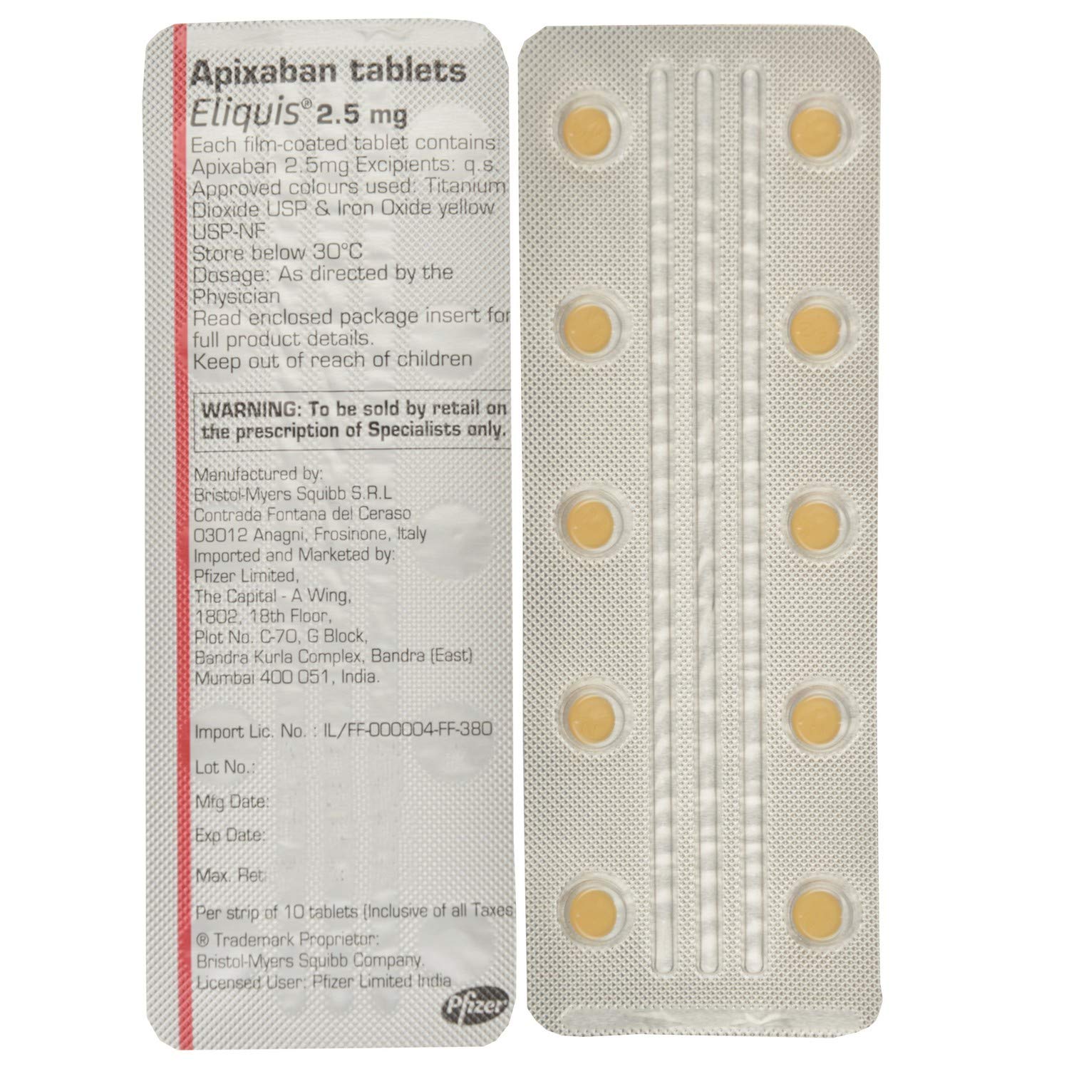 - Fabricant: Bristol-Myers Squibb Co, Pfizer.