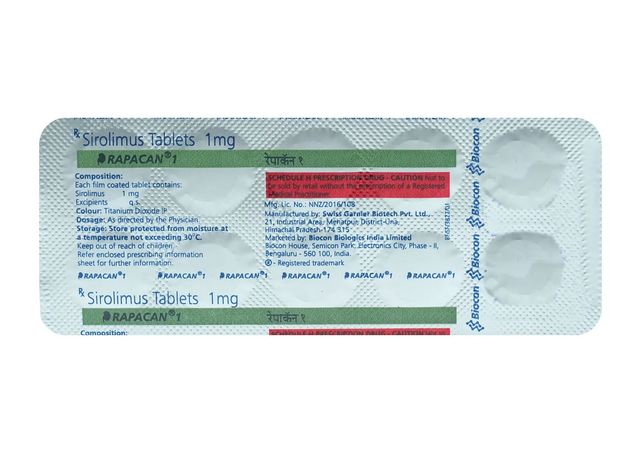 Rapamycin (Rapacan) 1 mg est disponible sous forme de comprimés. Pour tirer le meilleur parti du traitement par Rapamycin, suivez ces règles :
